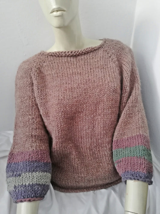 Hand knit CHUNKY sweater // made by MUM // Limited edition // different colour sleeves